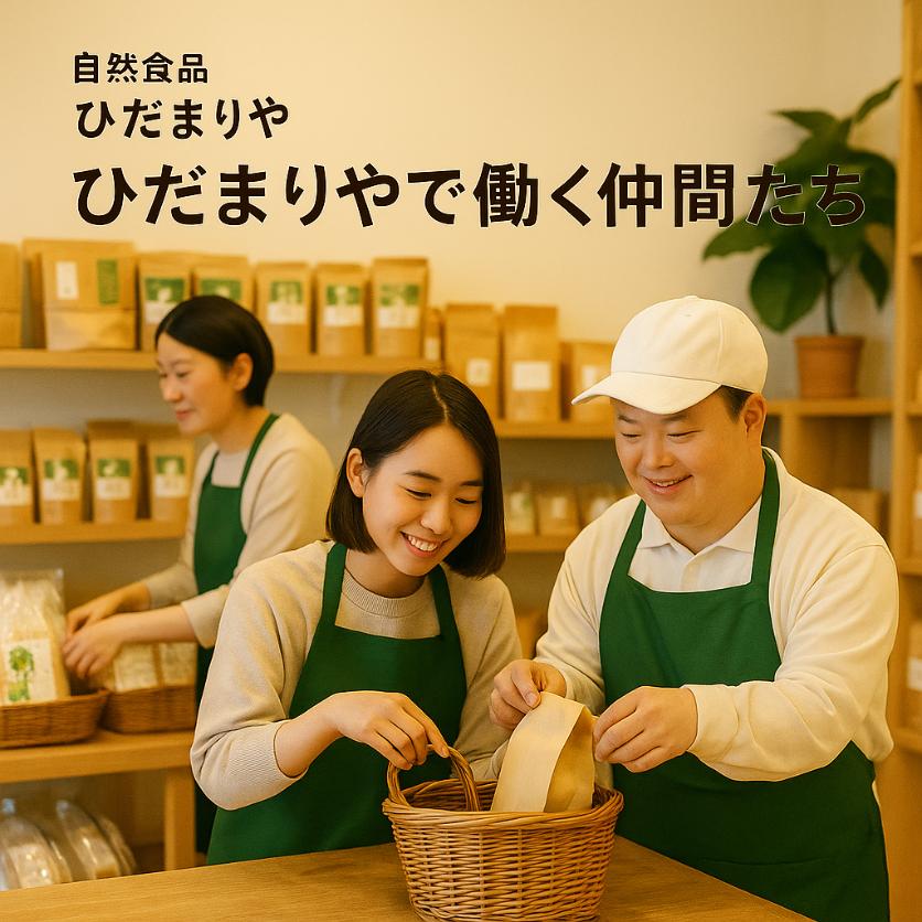 ひだまりやは、地域の方に愛される自然食品のお店であると同時に、障がいをもつ仲間たちが自分らしく働ける場でもあります。